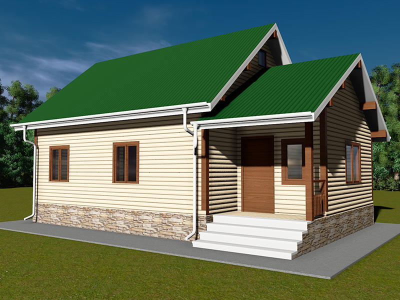 Простой в строительстве дом с двускатной крышей, подойдет, также, для узкого участка.